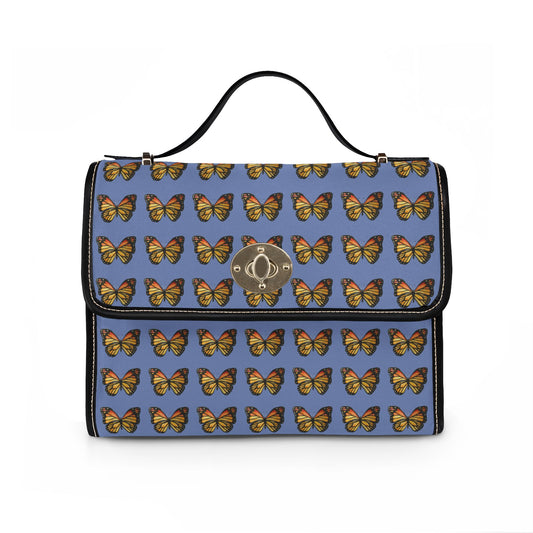 Butterfly Pattern Waterproof Canvas Bag — Retro Blue Tote/Backpack