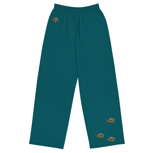 Piranha Teal Unisex Wide-Leg Pants — Relaxed Stretch Lounge Pants