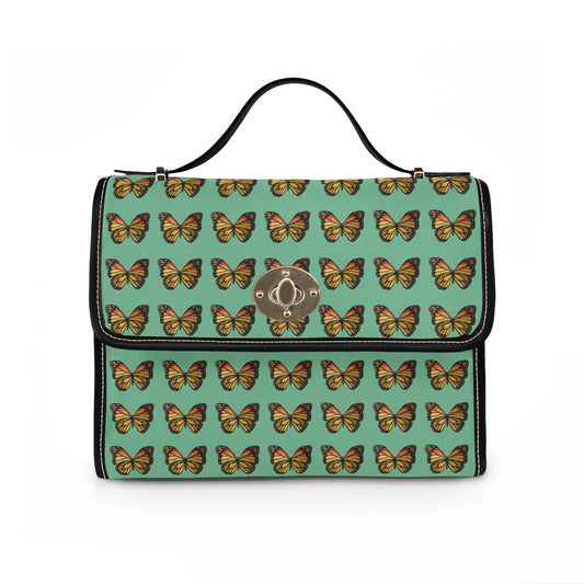 Butterfly Pattern Waterproof Canvas Bag — Retro Green Tote/Backpack