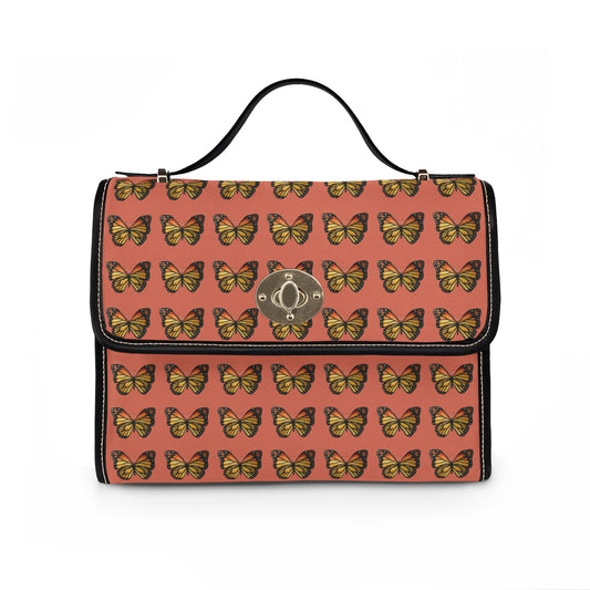 Butterfly Pattern Waterproof Canvas Bag — Retro Coral Tote/Backpack