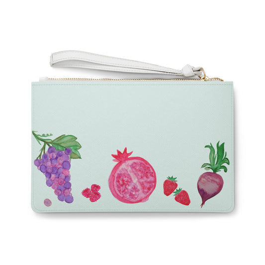 Fruit & Veg Watercolor Clutch Bag — Garden Produce Mint Wristlet