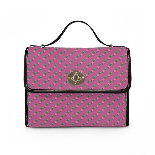 Pink Floral Radish Print Waterproof Canvas Crossbody Satchel