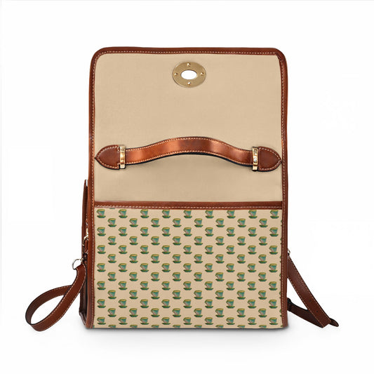 Green Teacup Pattern Beige Canvas Crossbody Satchel