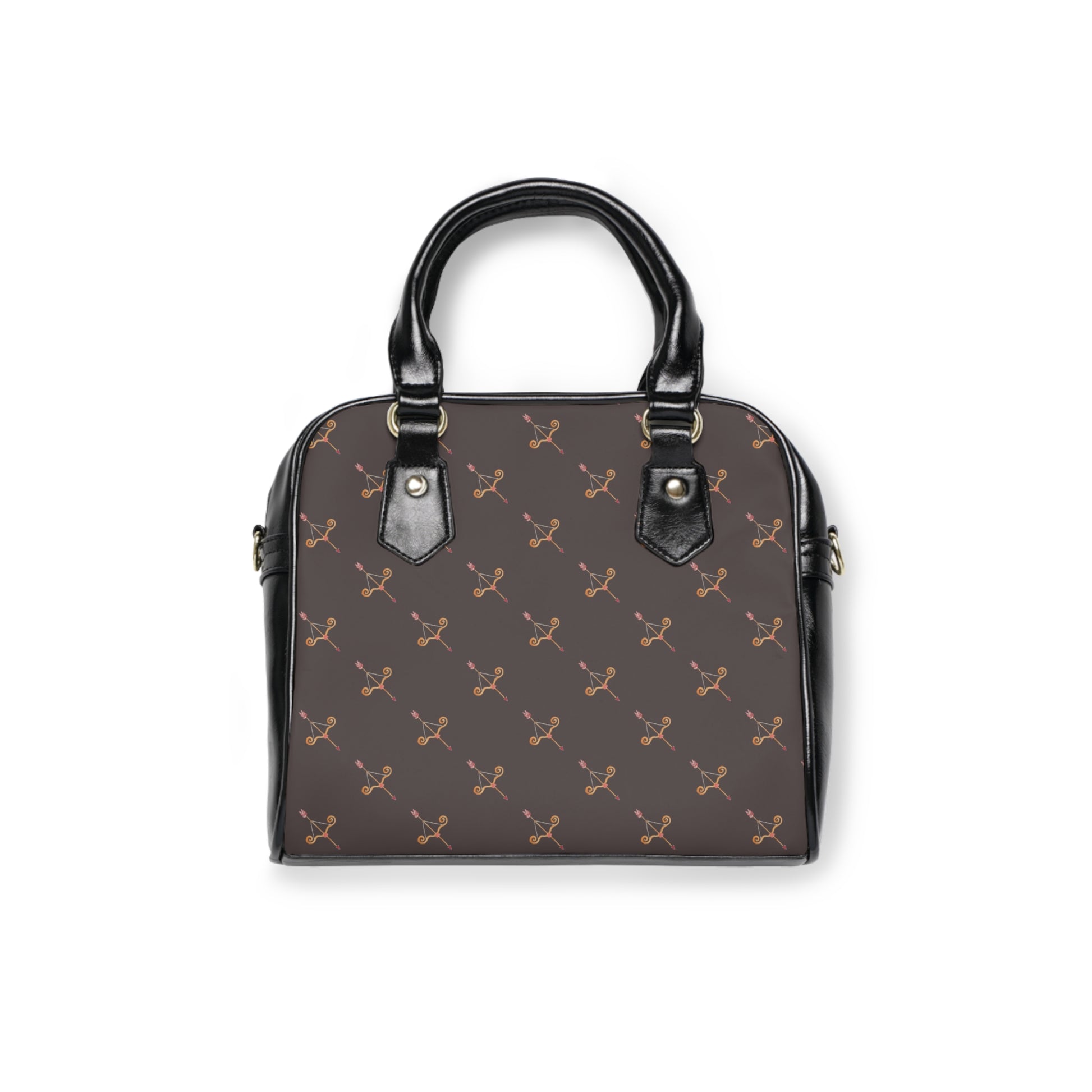 This compact shoulder handbag blends vintage polish with everyday practicality. Its warm, chocolate-brown exterior carries a subtle repeating motif in amber and rust tones, creating a refined, slightly retro look that complements both casual denim and smarter coats. The structured silhouette holds its shape while the black handles and piping add contrast and durability. Inside, a zip pocket and two open pockets keep essentials organized, with a polyester lining for easy care. Carry it by the handles for a classic feel or attach the removable, adjustable PU shoulder strap when you need hands-free convenience—this bag settles naturally into daily routines and weekend wanderings alike.